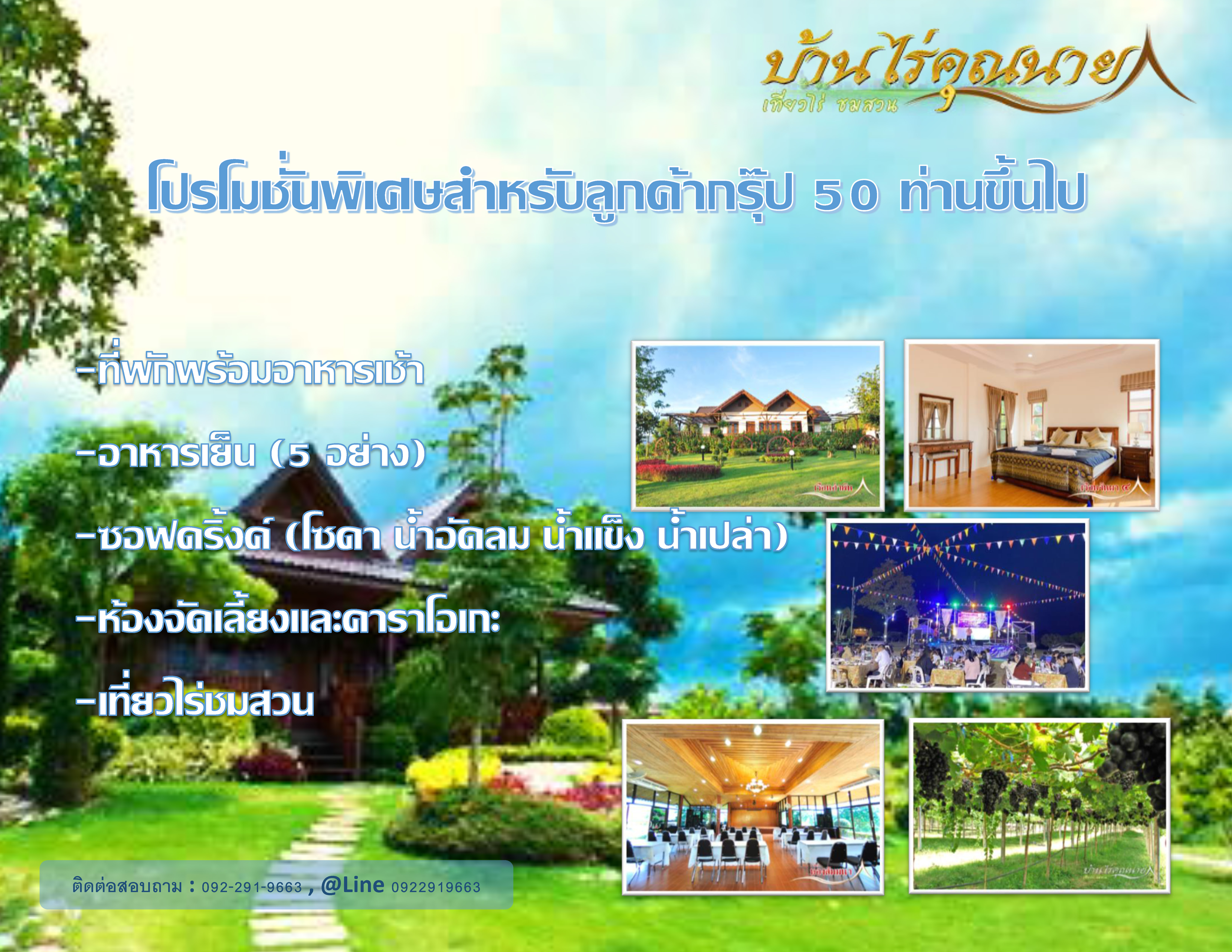 ครัวบ้านไร่คุณนาย คัดสรรวัตถุดิบชั้นดี กับเมนูหลากหลาย การันตรีรสชาติและความอร่อย บริการอาหารสำหรับผู้เข้าพักและนักท่องเที่ยว รวมถึงการจัดเลี้ยงสำหรับการประชุมสัมมนา งานเลี้ยงสังสรรค์ทุกประเภท
